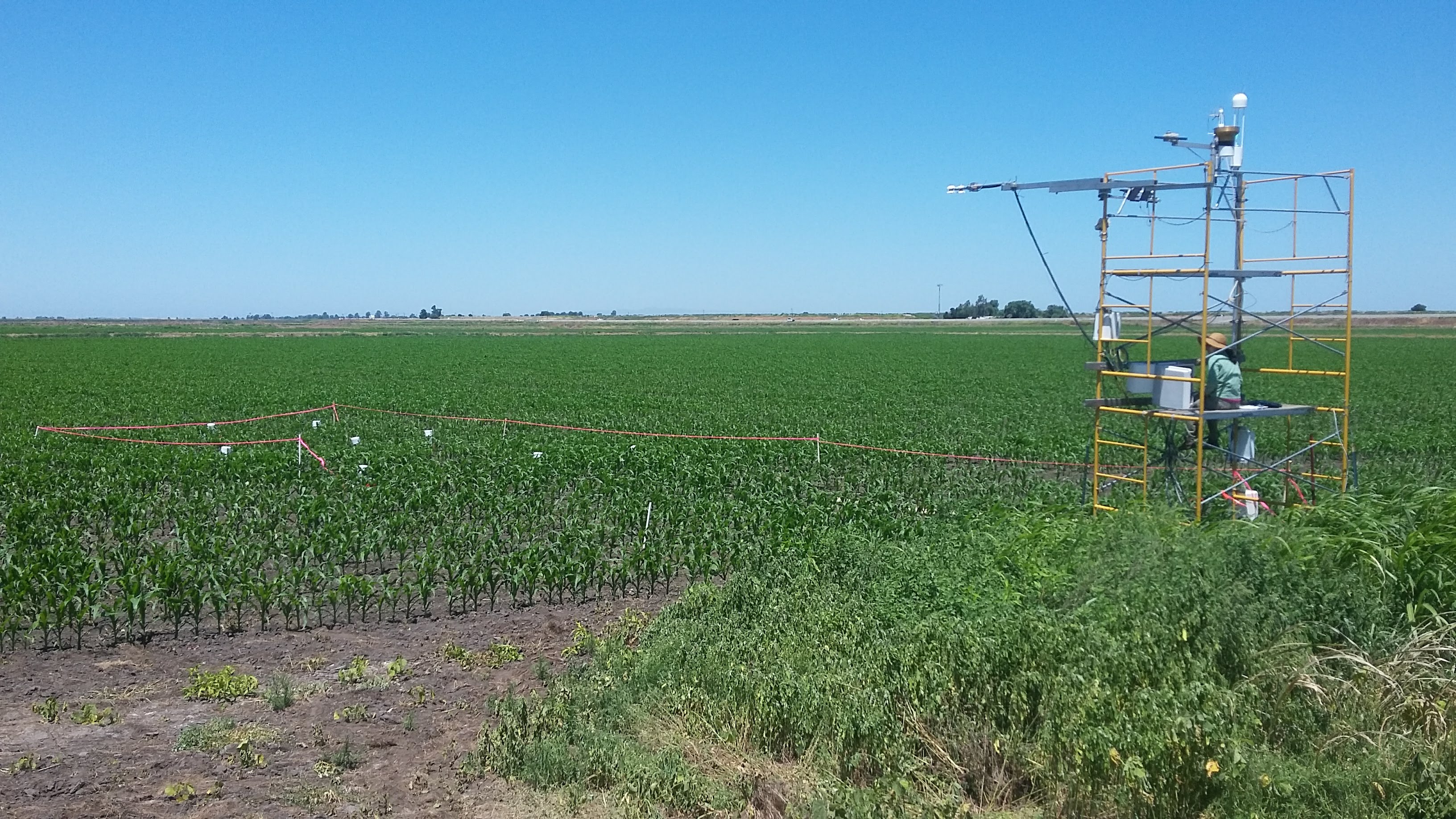 Many agricultural lands are located in water-scarce areas where optimizing water use is a necessity. Our goal is to improve estimates of evaporation from different crops and natural systems to aid water management decisions. Using the eddy-covariance technique, we can measure water exchange at a desired location and use this information to validate current models built with remotely sensed and reanalysis data.