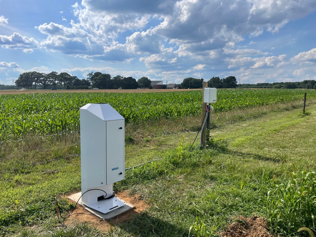 I am very happy to announce that the ceilometer for measuring cloud base heights and boundary layer heights has been installed in the Lake Wheeler Road Station. In the back of the picture is PhD student Roger Turnau, who is interested in using boundary layer heights to understand heat waves and in the front PI Camilo Rey-Sanchez, who is interested in linking surface fluxes to boundary layer dynamics. Special thanks to West Wiggins for his assistance and for taking some photos.